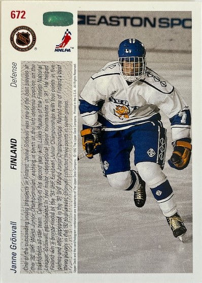 He was drafted 101st overall by Toronto in 1992, but never played in the NHL. Gronvall spent two seasons with St. John’s in the AHL, playing in the all-star game each season. From 1996 to 2009 he played for Tappara in Finland, save two seasons in Sweden.